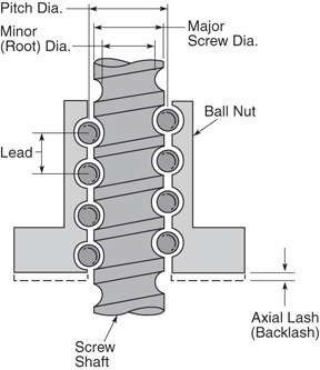 Backlash is another significant consideration in applications where positioning accuracy is important. Standard ball screw and lead screw configurations typically have backlash ranging from 0.02 mm to 0.25 mm. Anti-backlash lead nuts eliminate free play and increase repeatability. Most designs place a compression spring or other compliant member between two nut halves to remove radial clearance. Preload between the nut halves must equal or exceed the applied axial load in the direction in which the assembly is loaded through the take-up mechanism to prevent lost motion. The result is a higher torque requirement which typically necessitates a larger motor.