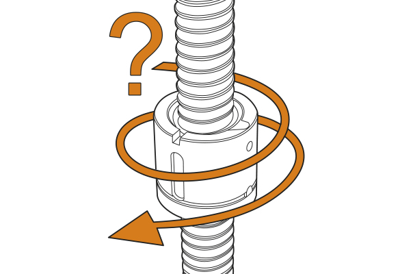 滾珠絲杠可用于垂直應(yīng)用。為了防止反向驅(qū)動,需要使用螺母防轉(zhuǎn)機構(gòu)并向系統(tǒng)施加反向驅(qū)動轉(zhuǎn)矩以保持負(fù)載。