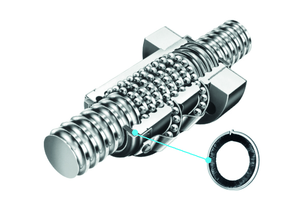 防止外部碎屑進(jìn)入滾珠螺母對(duì)于確保其平穩(wěn)運(yùn)行和長(zhǎng)使用壽命非常重要。大多數(shù)尺寸的滾珠螺母都可使用刮刷器。一些刮刷器被集成到螺母中,而另外一些則通過外部夾具固定在法蘭上。產(chǎn)品目錄中給出了每種螺母可用的刮刷器選項(xiàng)。
